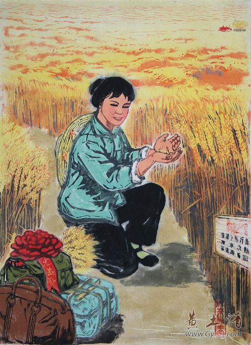 1976年旧作,水印,早已毁版,仅存1张。《丰收》讲述的是七十年代上山下乡知识青年去上了工农兵大学后又回到农村的故事。“丰收”即农业生产和文化学习的双丰收。