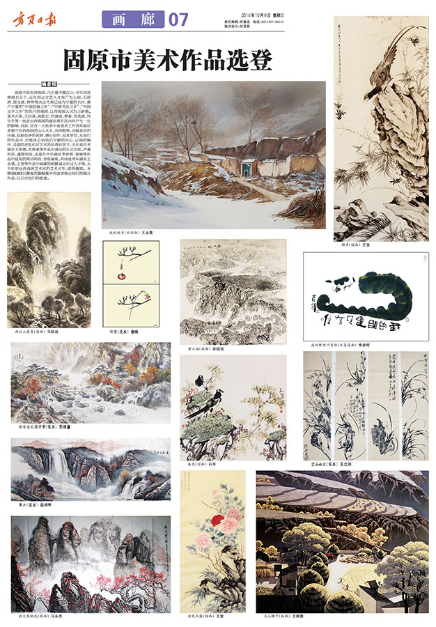 固原市俗称西海固,乃宁夏半壁江山,早年因贫瘠闻名天下,近年因出文艺人才而广为人知,石舒清、郭文斌、柳萍等杰出代表已成为宁夏的名片,落户宁夏的“中国绘画之乡”、“中国书法之乡”、“中国文学之乡”均花开西海固,让西海固人民为之骄傲。美术方面,王印泉、高凯宏、何富成、费春、伏兆娥、何学升等一批走出西海固的画家都在区内外产生一定的影响,目前,还有一大批老中青美术工作者和爱好者留守在西海固的山山水水、沟沟壑壑,克服恶劣的环境,忍耐经济的困窘,潜心创作,追求梦想,从他们的作品中,你能体会到他们宁静的内心,辽阔的胸怀,灵感的迸发和对艺术的执着和坚守,无论是在老画家王维德、苏维童等作品中透出的扎实功底、严谨构图、遵循传统,还是在中年画家李彦辉、鲁楠等作品中显现的简洁明快,夸张凝练,抑或是青年画家王永晟、王莹等作品中展露的细腻通灵和过人才情,无不折射出西海固艺术家的艺术才华,澎湃激情。本期《画廊》以整版的篇幅集中向读者推出他们的部分作品,以示对他们的敬意。